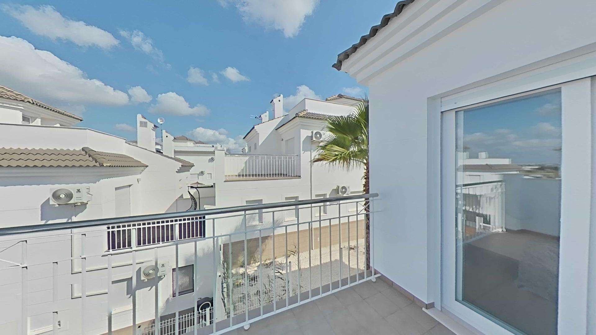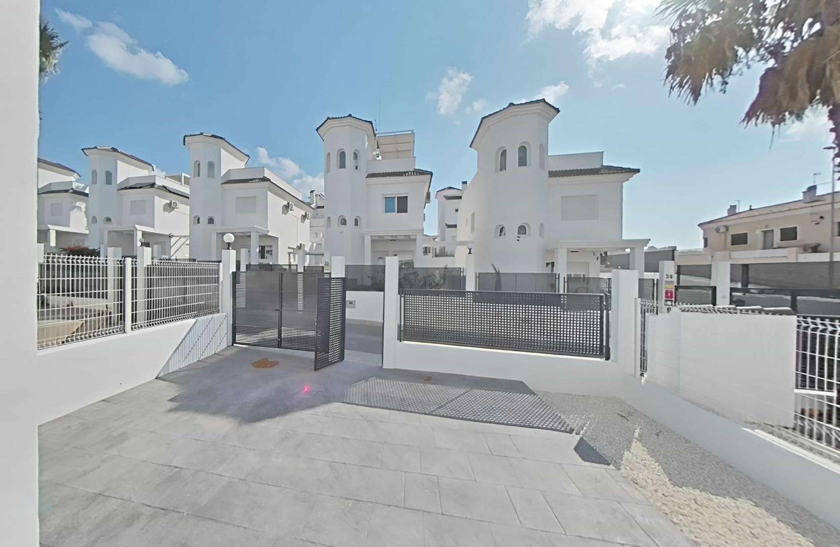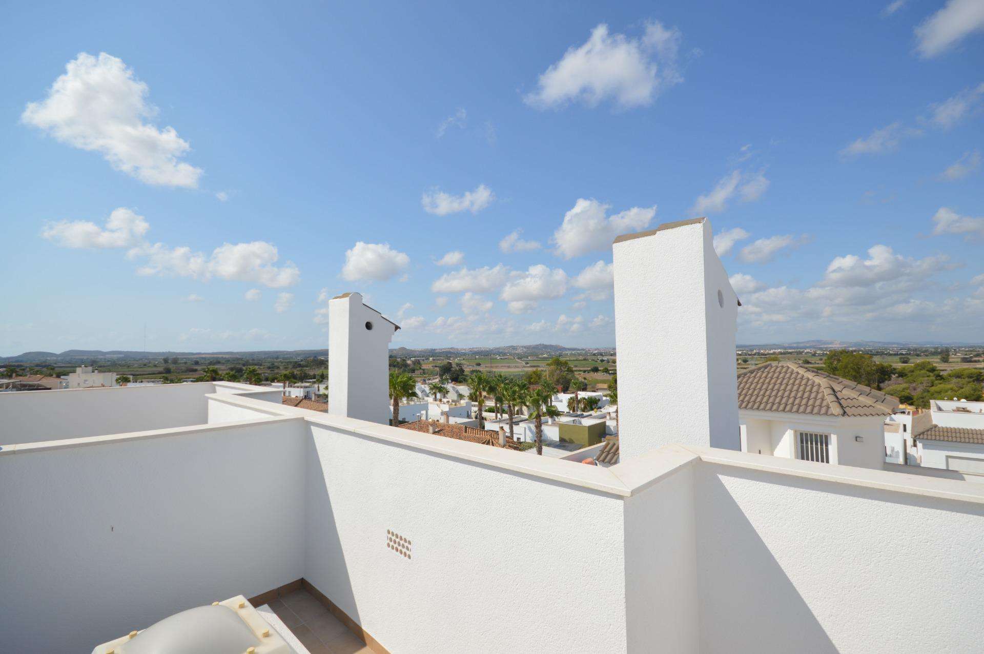 Die Doppelhaushälften bestehen aus 3 Schlafzimmern, 3 Badezimmern, einem Wohn-Esszimmer und einer separaten Küche, 2 Terrassen im Erdgeschoss, einer Terrasse im 2. Stock und einem Solarium auf dem Dach.
