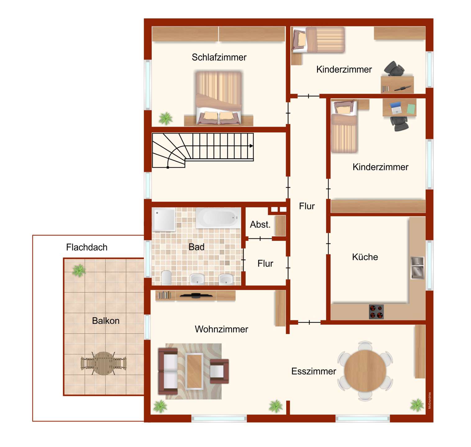 Im Obergeschoss erwarten Sie weitere vier Zimmer, eine Küche, ein Tageslichtbad und ein Balkon, der Ihnen einen schönen Ausblick und frische Luft bietet. Das große Dachgeschoss mit Abstell- und Hobbyraum sowie einem zusätzlichen einfachen Bad erweitert die Nutzungsmöglichkeiten – sei es als Spielbereich, Homeoffice oder Rückzugsort.