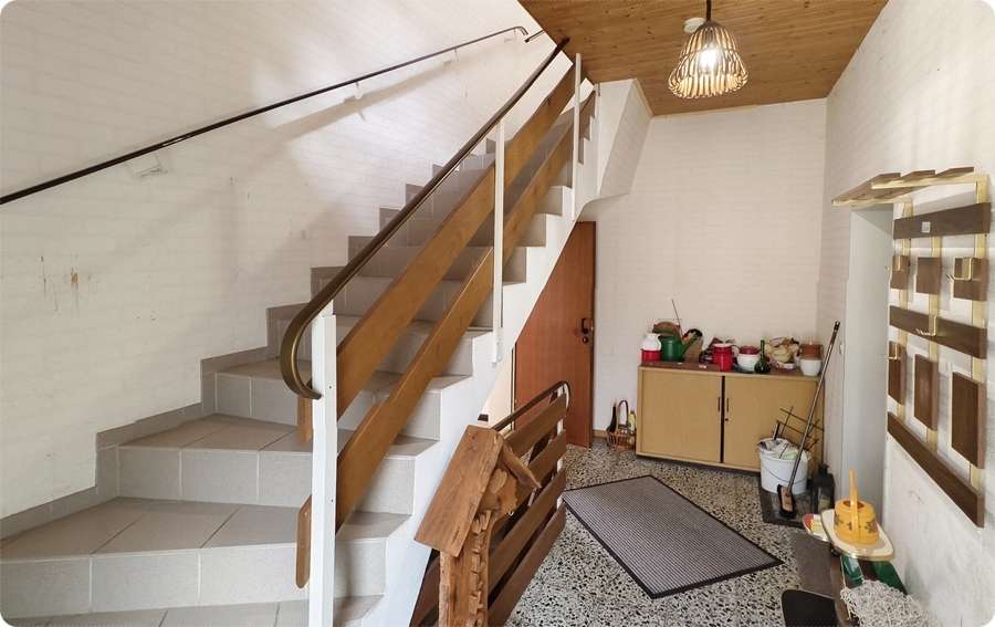 Das Erdgeschoss besticht durch seinen direkten Zugang zur angrenzenden Werkstatt, der geräumigen Garage und der überdachten Terrasse, die zum gemütlichen Beisammensein im Freien einlädt. Hier können Sie den Alltag entspannt genießen und gleichzeitig von den praktischen Nebengebäuden profitieren. Im Eingangsbereich können Sie noch ein separates WC nutzen.
