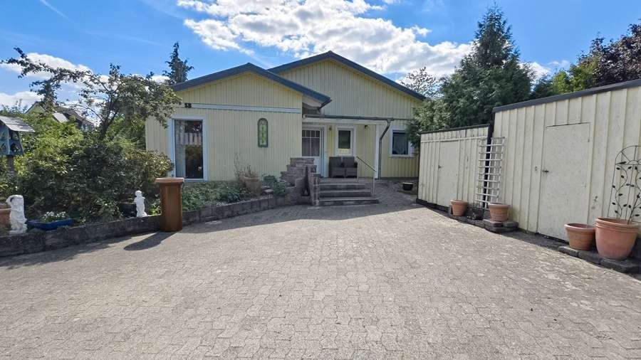 Neben dem liebevoll gestalteten Garten stehen diverse Garagen (eine davon mit Grube) und Schuppen zur Verfügung, die ausreichend Platz für Fahrzeuge, Fahrräder, Hobbys und Gartengeräte bieten.