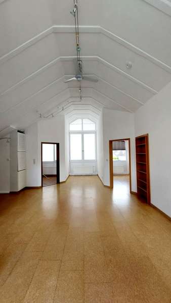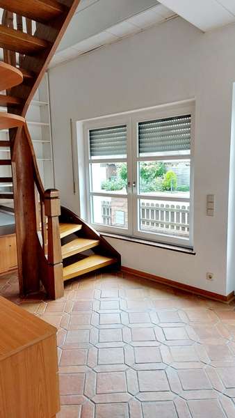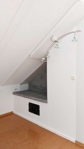 - Obergeschoss links: 2-Zimmerwohnung mit ca. 88 m² Wohnfläche und Balkon. Von hier aus gelangt man ins ausgebaute Dachgeschoss mit ca. 99 m². Nach einer Modernisierung bieten sich zwei Optionen: eine großzügige Maisonettewohnung über beide Ebenen oder die Schaffung einer separaten Dachgeschosswohnung. Eine baurechtliche Prüfung hierzu obliegt dem Käufer.