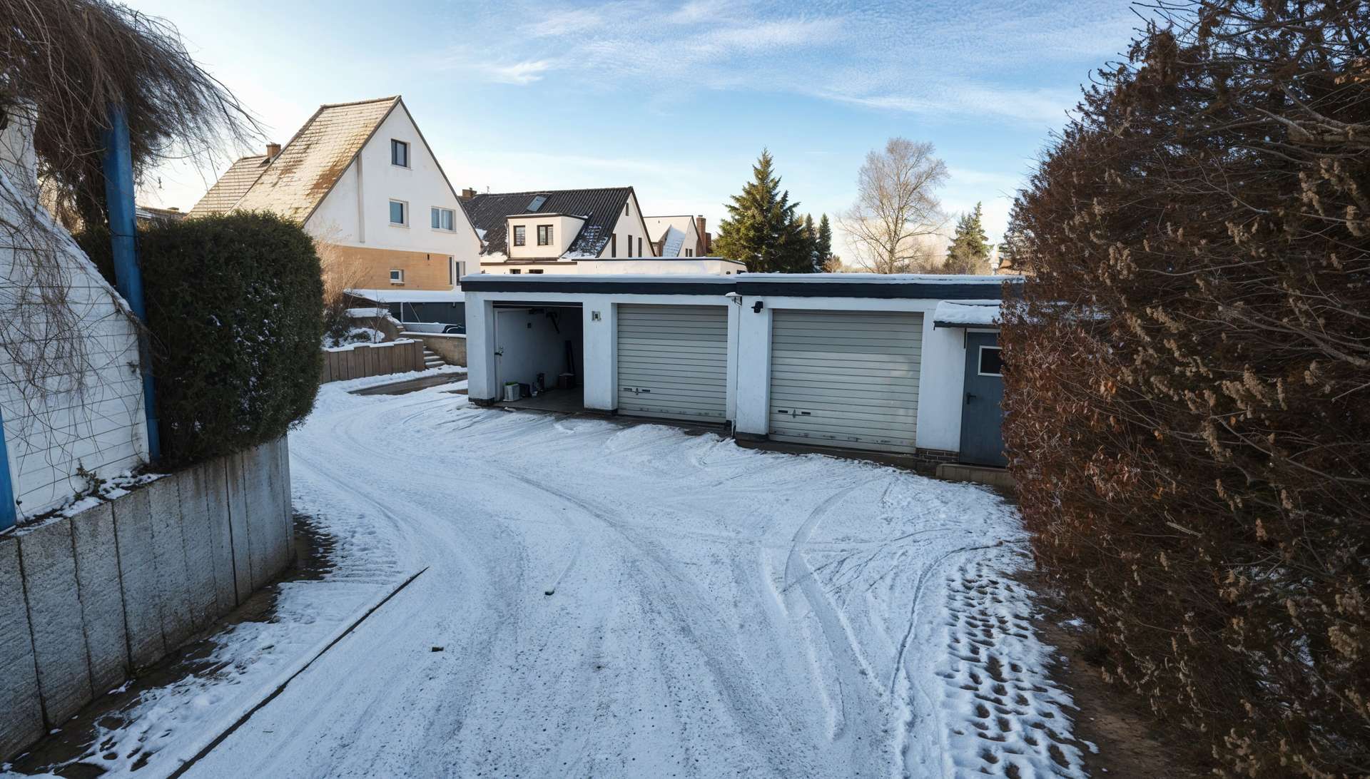 Auf der Rückseite des Gebäudes stehen Ihnen drei Garagen sowie zusätzliche Pkw-Stellplätze zur Verfügung.