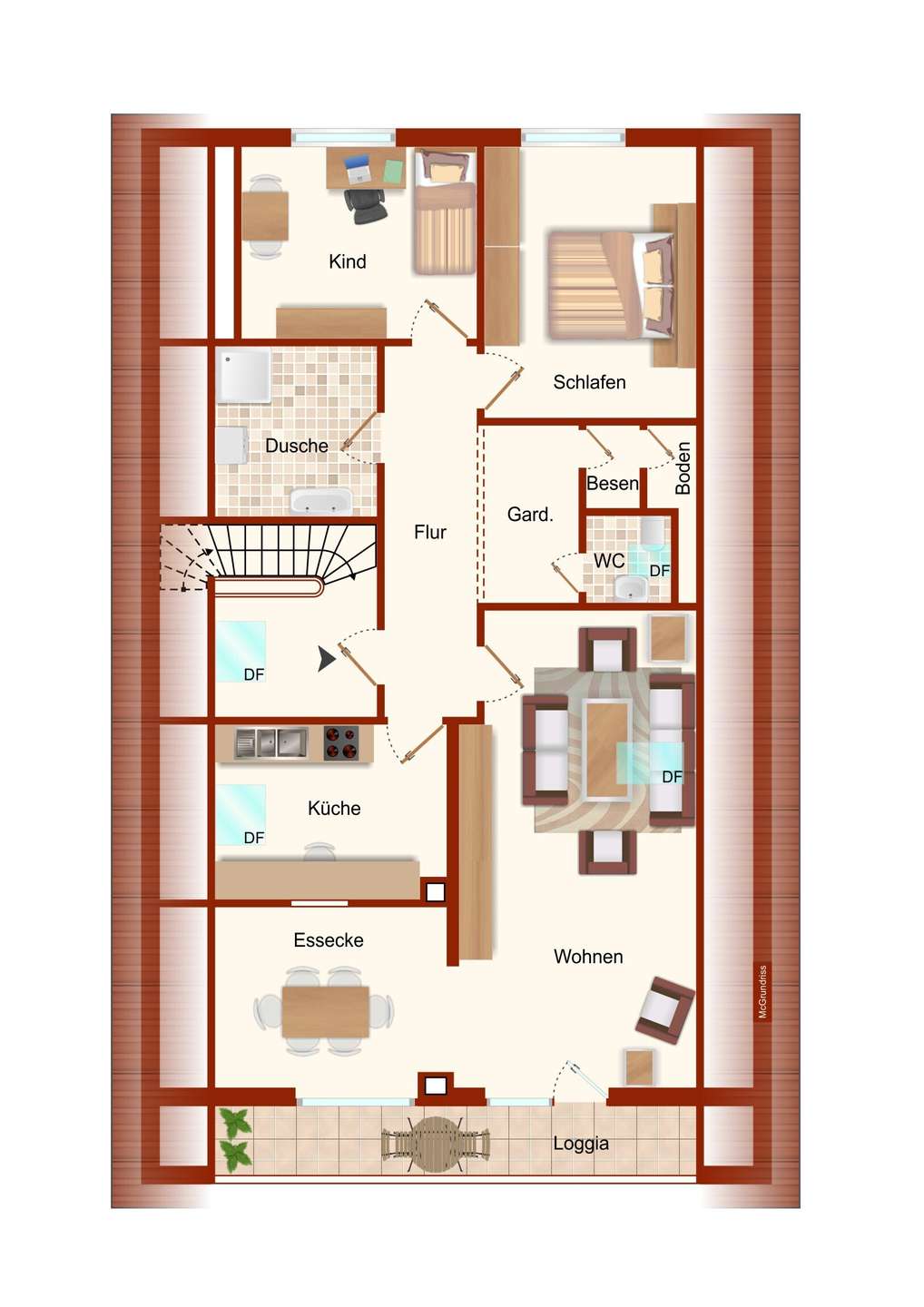Von der Loggia aus haben Sie einen wunderschönen Blick in den gepflegten Garten.
