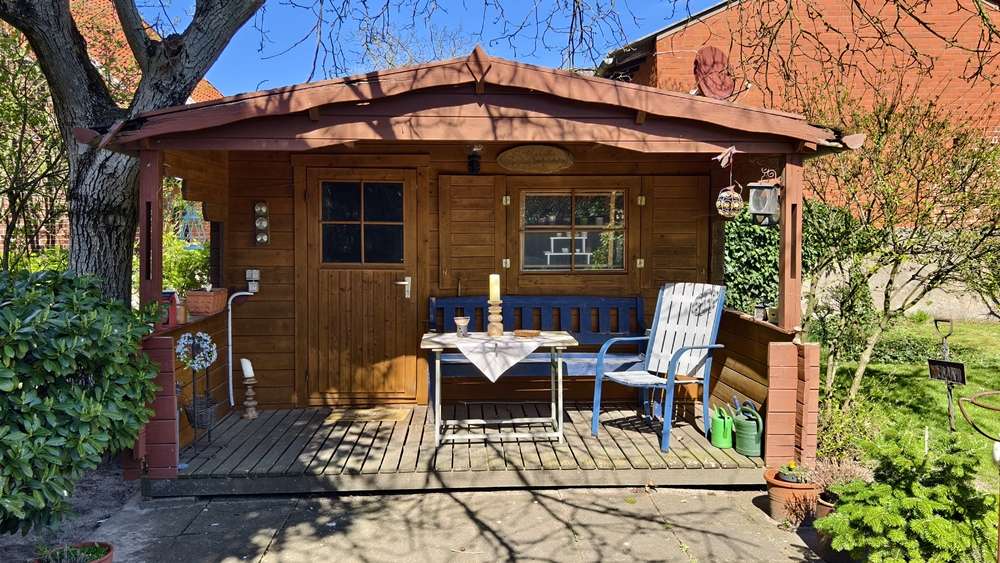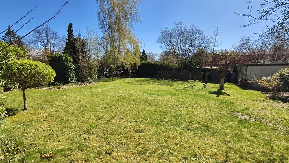 Der großzügige Garten mit praktischem großen Gartenhaus, bietet viel Platz für Erholung, Spiel und kreative Gartengestaltung.