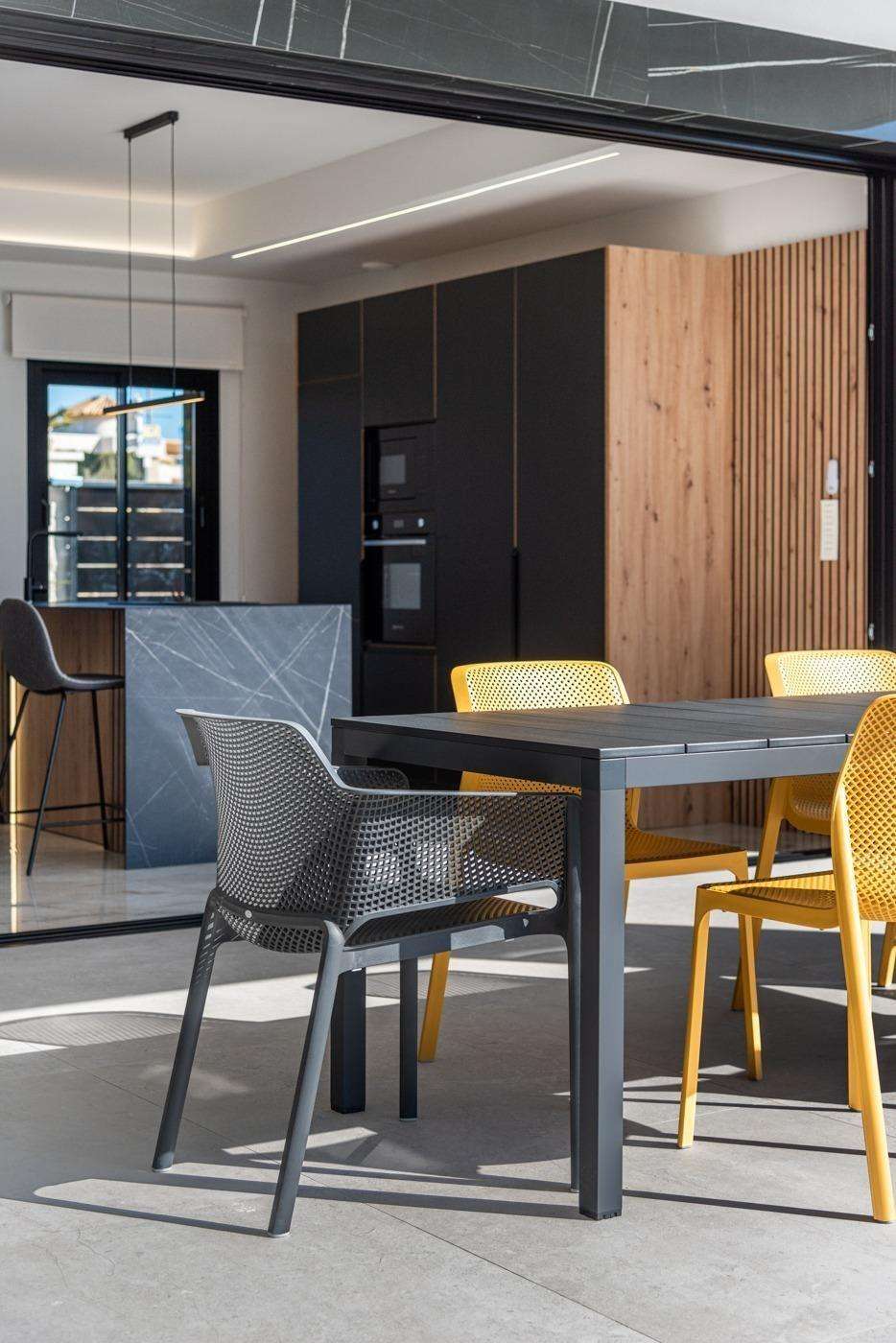 Die offene Küche ist ein wahres Herzstück des Hauses: modern ausgestattet und mit viel Platz, um kulinarische Köstlichkeiten zu zaubern oder gesellige Kochabende mit Familie und Freunden zu genießen. Vom angrenzenden Wohnzimmer aus eröffnet sich Ihnen ein herrlicher Blick auf die weitläufige Terrasse, die sich nahtlos an den Wohnbereich anschließt und so das Leben im Freien zu jeder Jahreszeit ermöglicht.