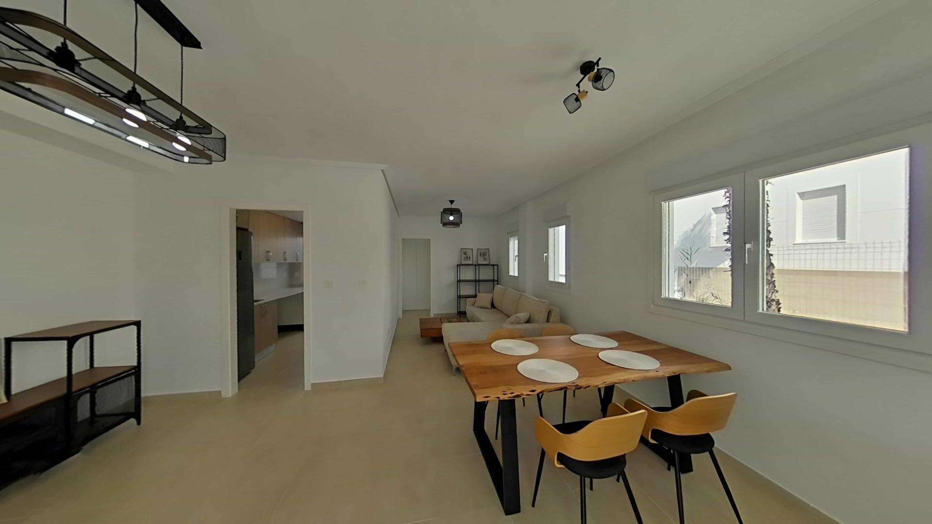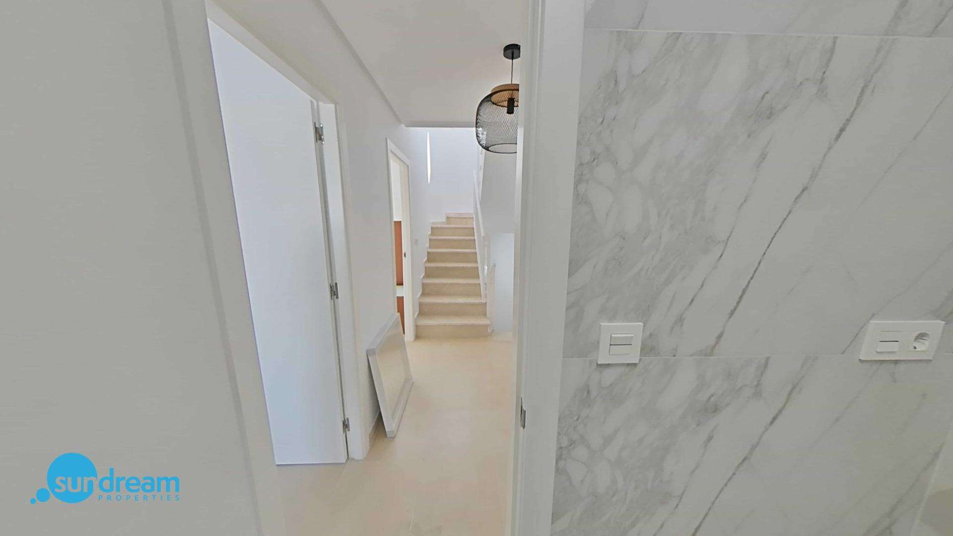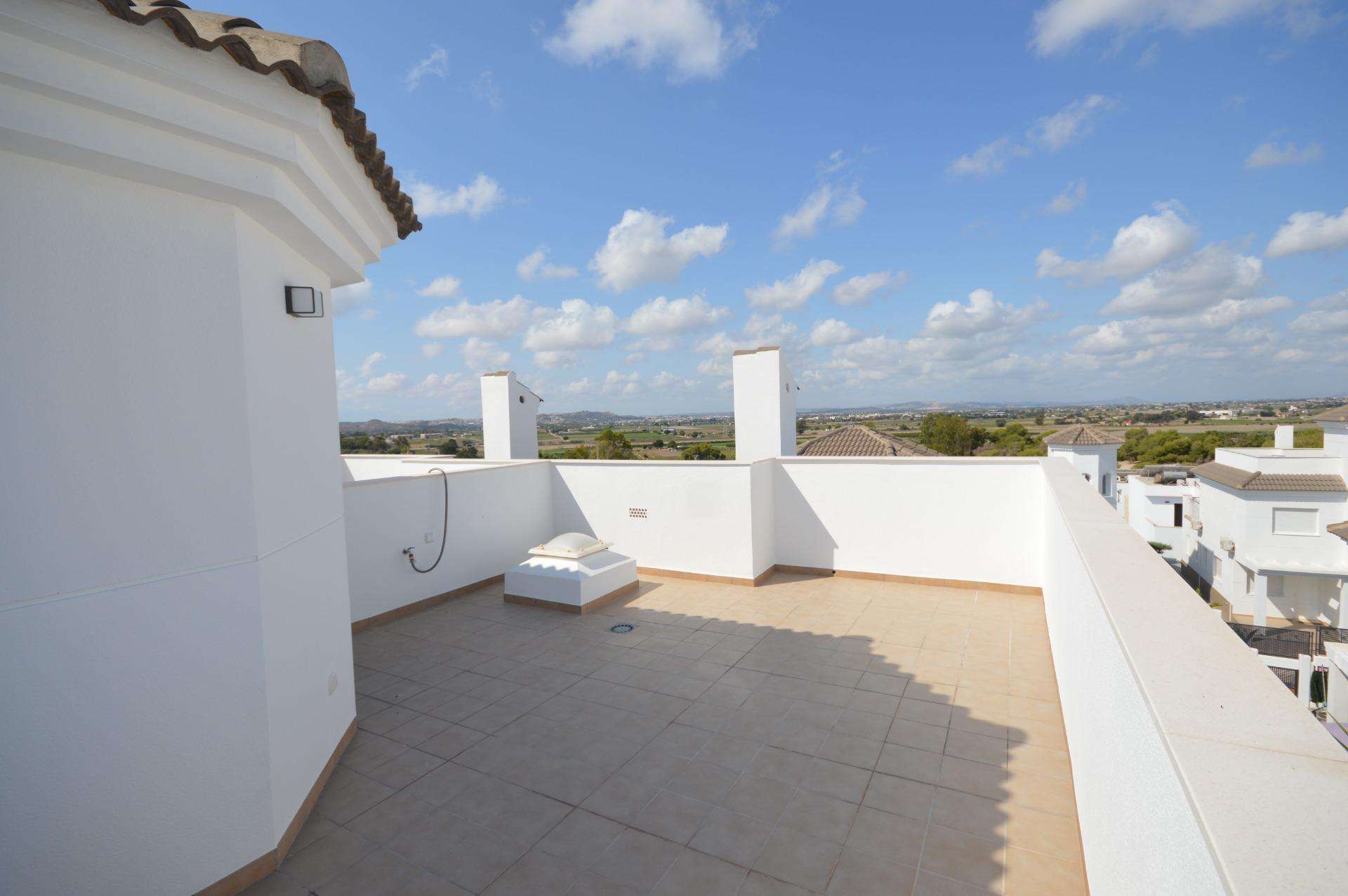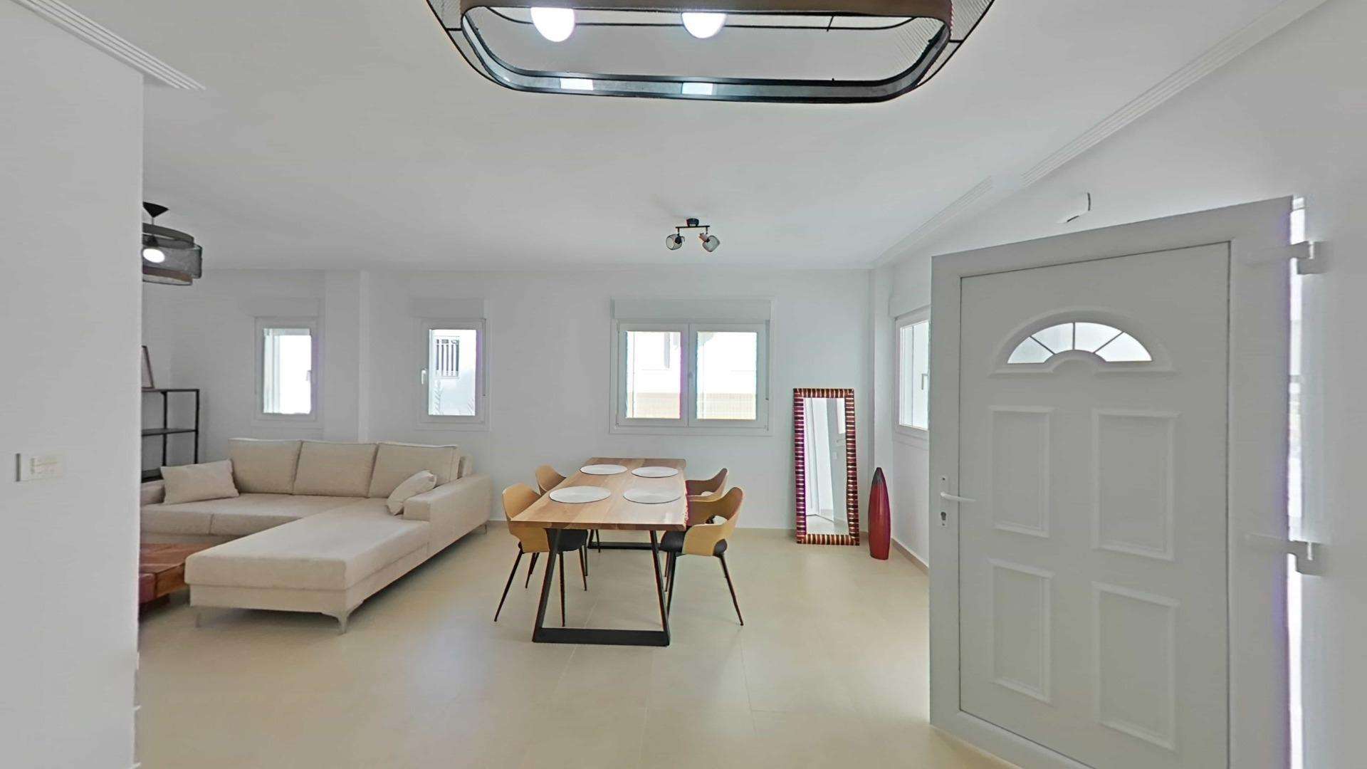 Die Doppelhaushälften bestehen aus 3 Schlafzimmern, 3 Badezimmern, einem Wohn-Esszimmer und einer separaten Küche, 2 Terrassen im Erdgeschoss, einer Terrasse im 2. Stock und einem Solarium auf dem Dach.