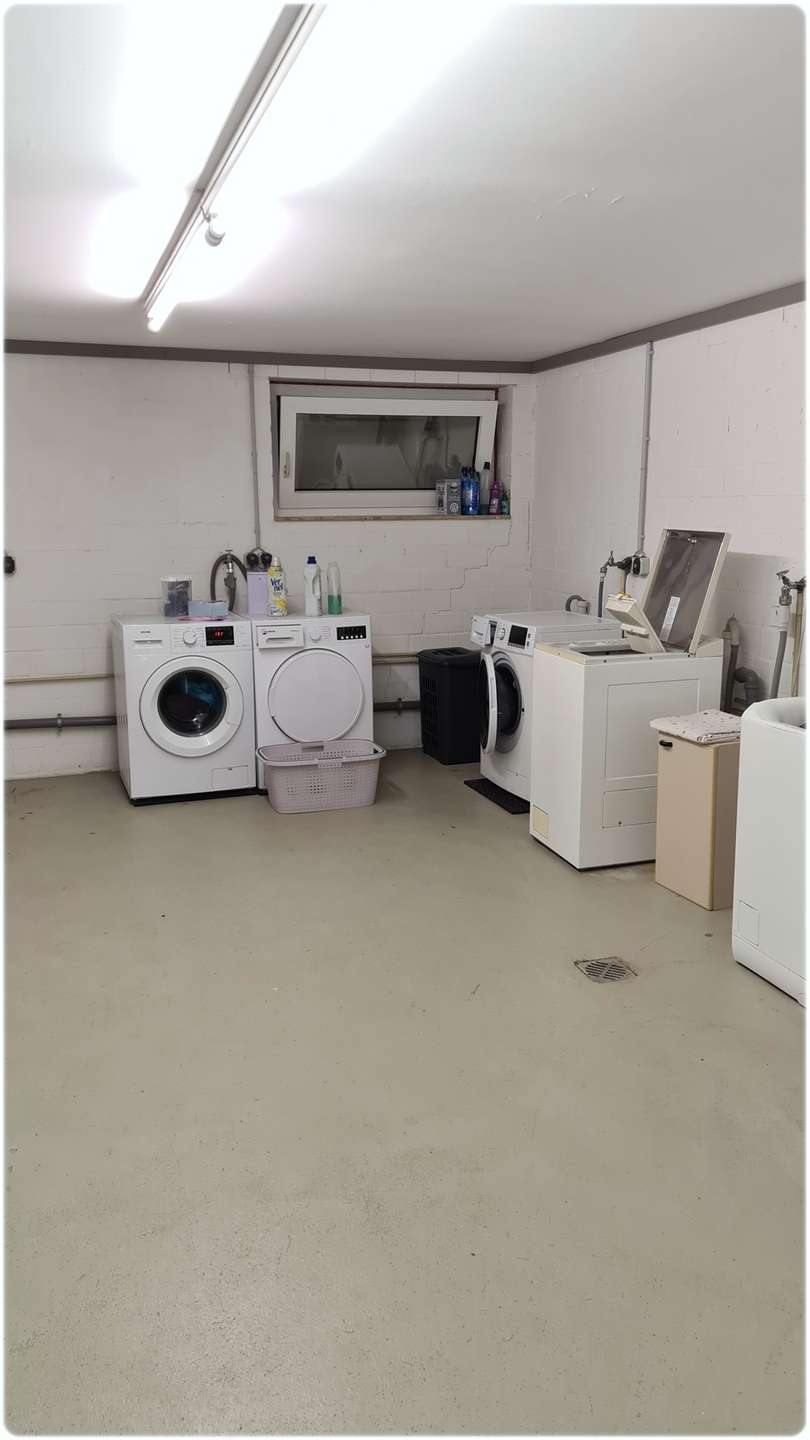 Im Keller finden Sie einen großen Waschraum, der allen Mieteinheiten zur Verfügung steht – somit wird das Wäschewaschen zum unkomplizierten Teil Ihres Alltags.