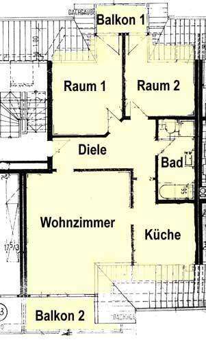Das besondere Bonbon sind 2 Balkone, jeweils auf den Stirnseiten der Wohnung.