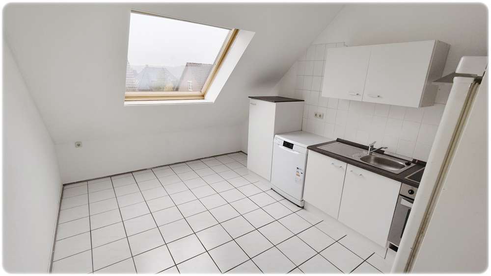 Die helle Küche ist mit einer funktionalen Einbauküche ausgestattet, welche übernommen werden könnte.