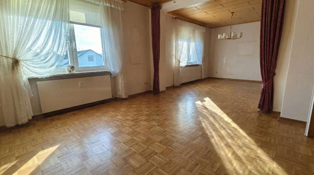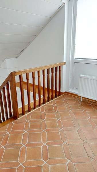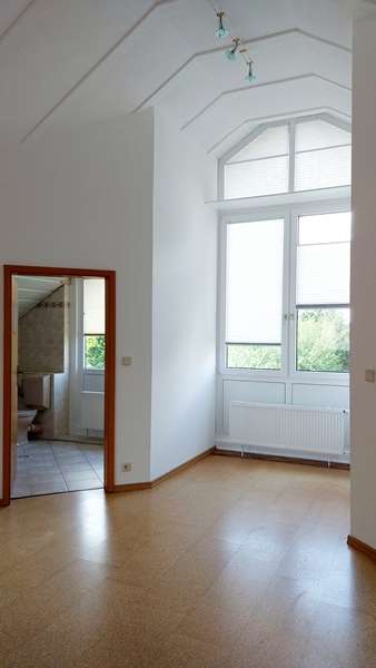 - Obergeschoss links: 2-Zimmerwohnung mit ca. 88 m² Wohnfläche und Balkon. Von hier aus gelangt man ins ausgebaute Dachgeschoss mit ca. 99 m². Nach einer Modernisierung bieten sich zwei Optionen: eine großzügige Maisonettewohnung über beide Ebenen oder die Schaffung einer separaten Dachgeschosswohnung. Eine baurechtliche Prüfung hierzu obliegt dem Käufer.