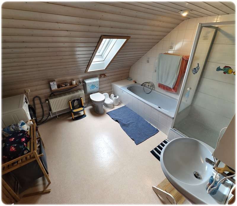 Im Dachgeschoss befinden sich das Schlafzimmer, zwei Kinderzimmer sowie ein Arbeits- und Gästezimmer. Ein großzügiges Bad mit Badewanne, Dusche und Sauna rundet das Raumangebot ab.